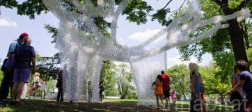 The Governor's Cup Pavilion has been receiving wonderful news coverage as it continues to delight its viewers throughout the summer. Says Artnet: "Particularly striking is CDR Studio's 'Governor’s Cup,' a collection of plastic cups that have been woven together with zip ties to create low, curving walls, surprisingly comfortable seating, hanging curtains suspended from evergreen trees, and, at least during the festival, fanciful capes.”  view full article