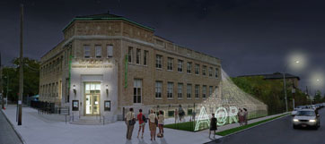 Below is an image of the Armory Portal. CDR re-imagines the Armory as a shared room of passage from the city to the park, creating a space that is flexible and offers a location shared public entities.