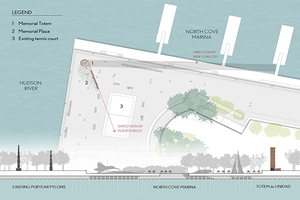 One of the unforeseen results of Hurricane Maria has been a sense of unity created among disparate groups of Puerto Ricans: survivors, victims’ families, individuals living in New York and across the world. Tótem de Unidad’s design is a tribute to that “oneness.” Crafted with Puerto Rican clay tiles, Tótem de Unidad is essentially born from the native soil. It also acts as a hinge connecting the two islands: A lattice arm reaches toward Puerto Rico; the shadow cast by the tótem extends back to NYC each sunset.