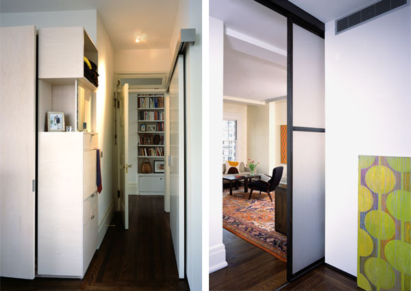 Perched on the 10th and 11th floors of a landmarked building on the southern edge of Gramercy Park, the 1,500 square foot residence consists of two levels with exposure to sunlight on three sides. Occupied for nearly 50 years by the client’s grandparents, the new interior stitches together original details with the intervention of new materials, custom-designed furniture and contemporary art work.